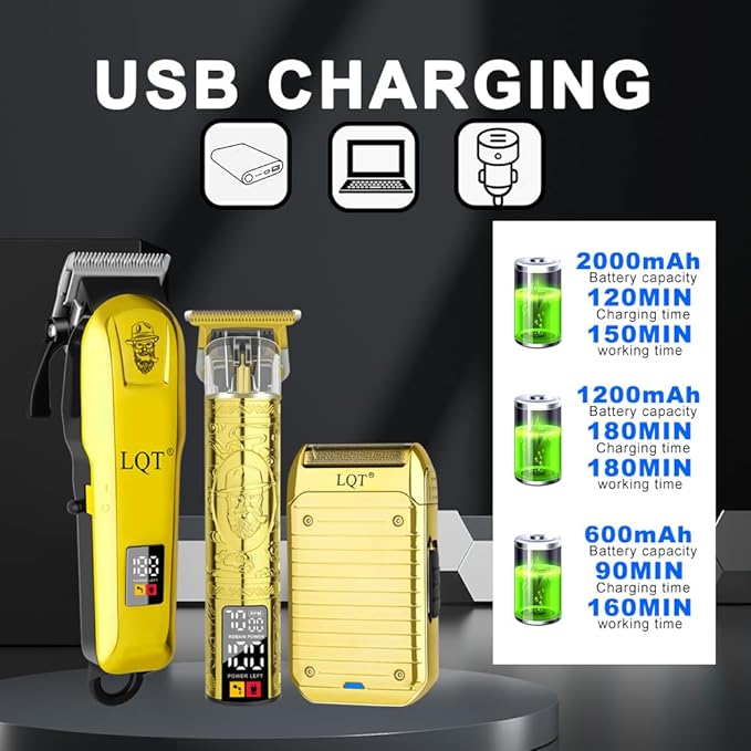 - Professional-Grade Performance Our LQT men’s hair clippers feature high-precision stainless steel blades and a powerful motor for effortless, salon-quality cuts. Designed for all grooming needs, the set includes 8 premium limiting combs for customizable hair lengths, while the ergonomic design adapts to facial contours for a close, irritation-free shave.